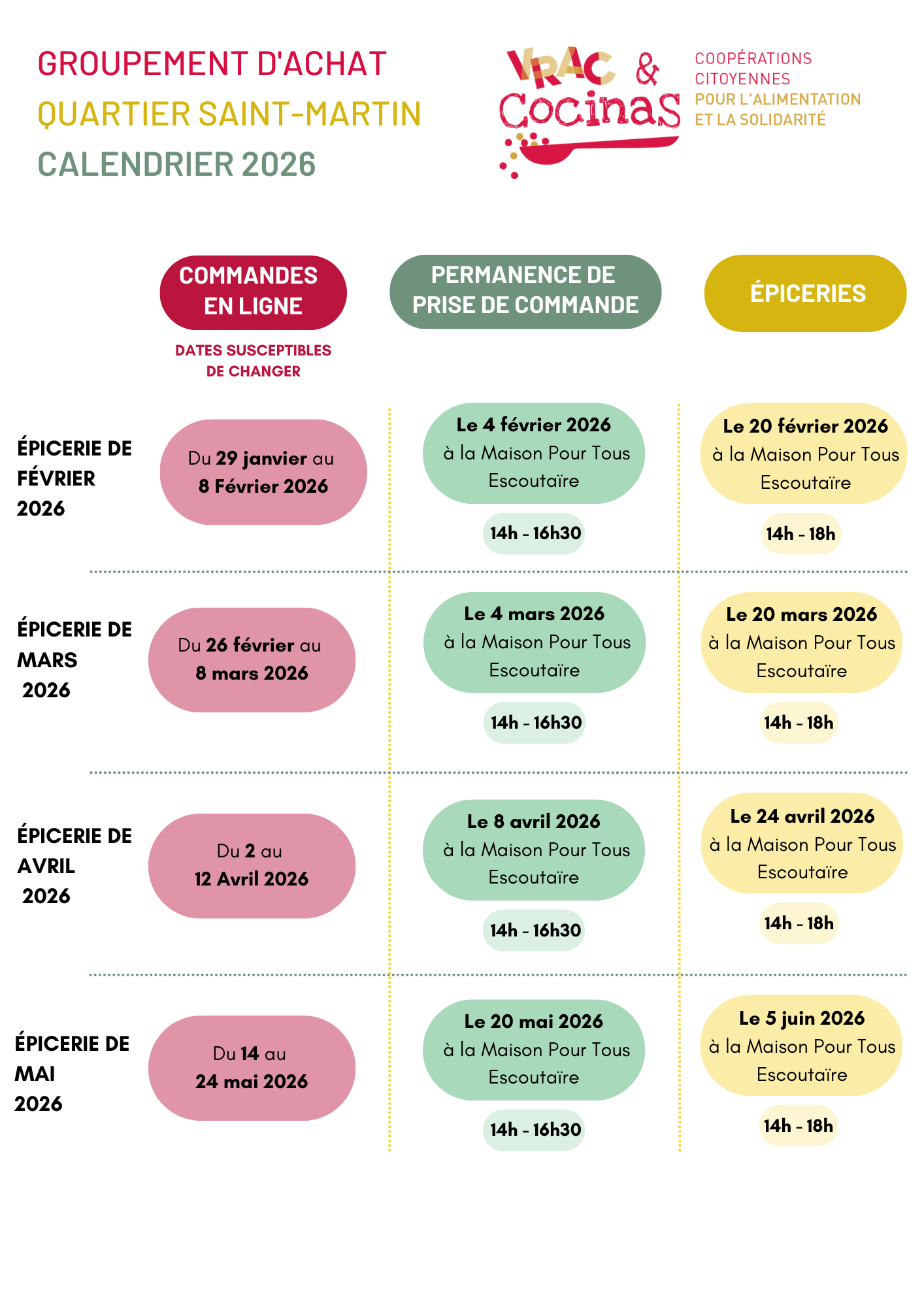 Une grande partie des produits sont proposées en vrac : ne pas oublier ses contenants (bouteilles, bocaux, sachets réutilisables) le jour de l’épicerie !